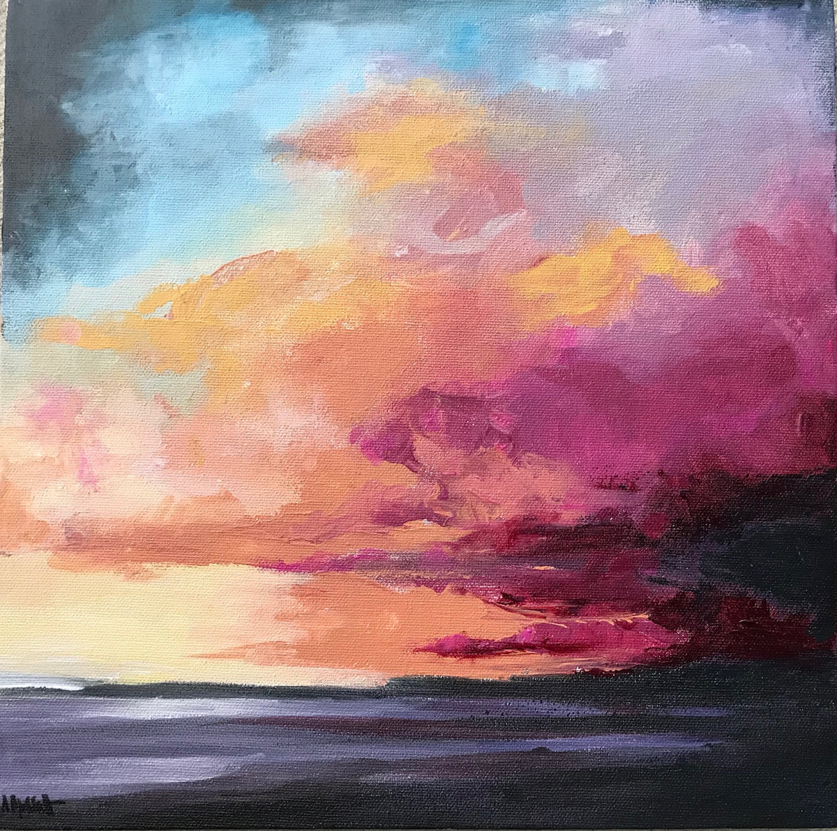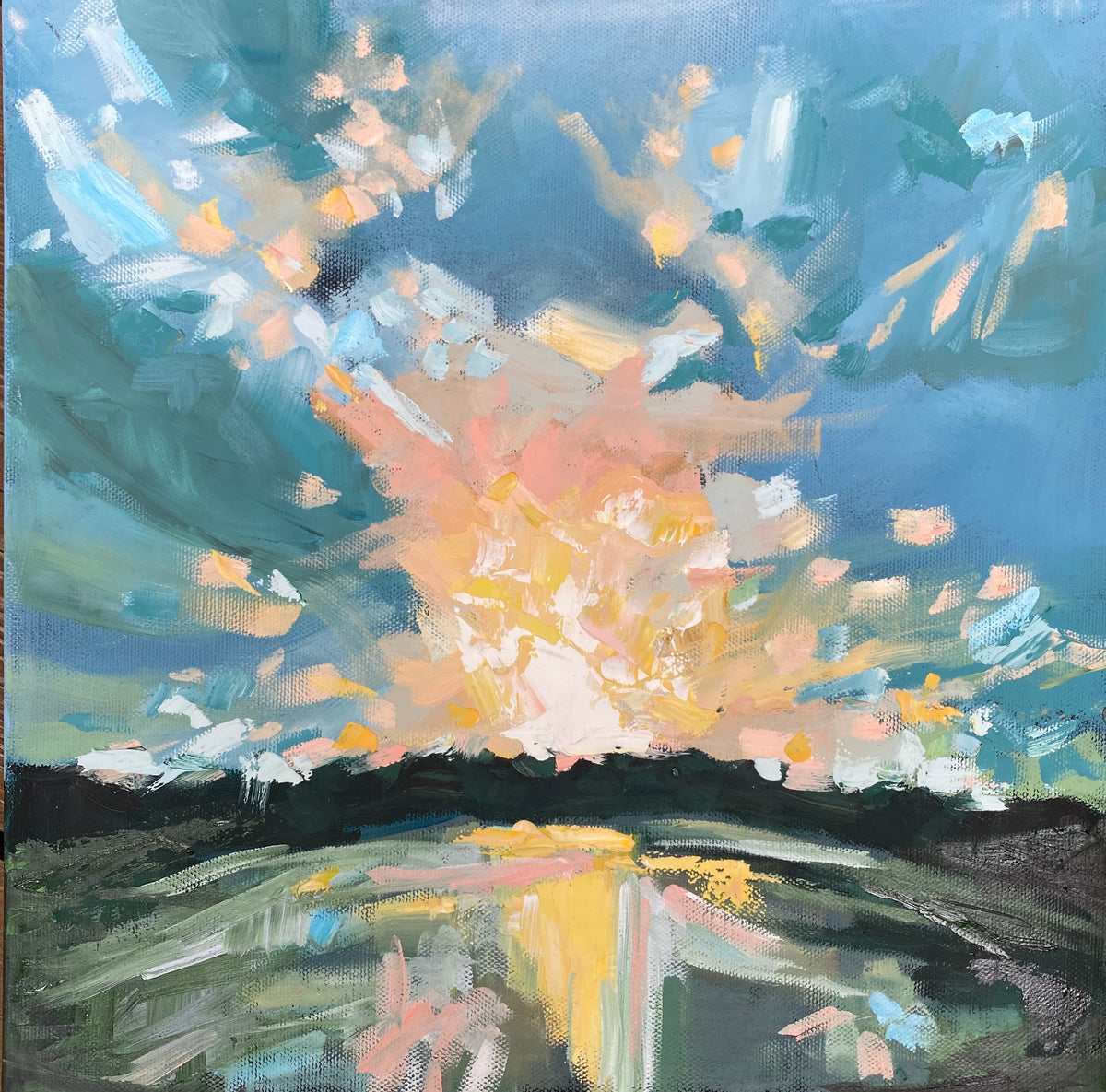 A custom-sized Lowcountry Sunset commissioned in loving memory of a Father and the view from the family coastal home.