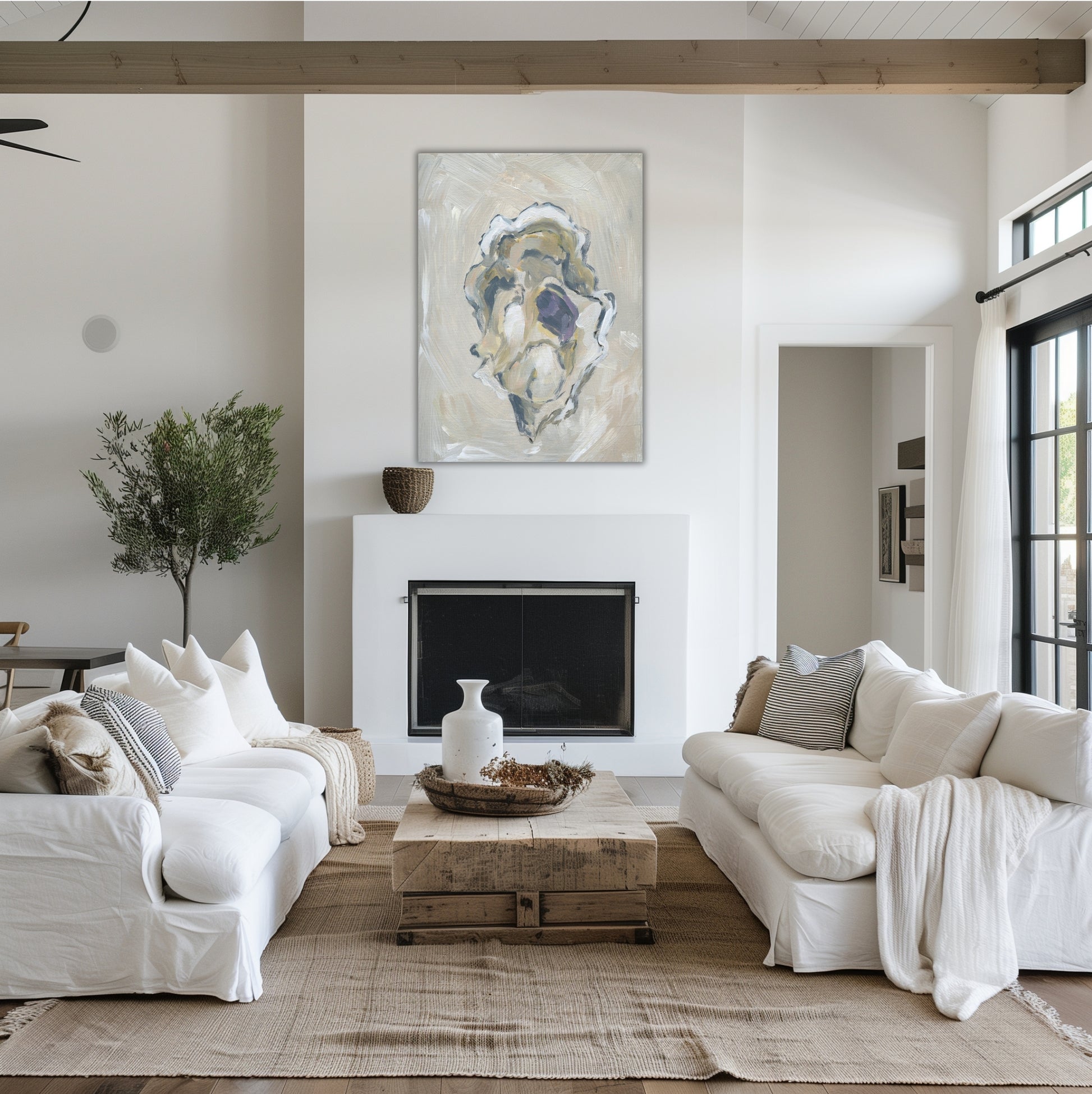 The final movement in the series, Beige Oyster 3, shifts the focus toward the intricate internal architecture and the hidden core of the form. The composition draws inspiration from the protective nature of the shell, utilizing a layering of warm neutrals to symbolize the passage of time and the accumulation of natural history. By highlighting the sweeping, concentric curves of the oyster’s interior, the work reflects on the beauty of vulnerability and the quiet elegance found in the most subtle details of the natural world.