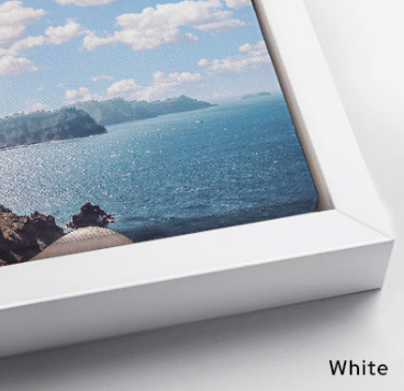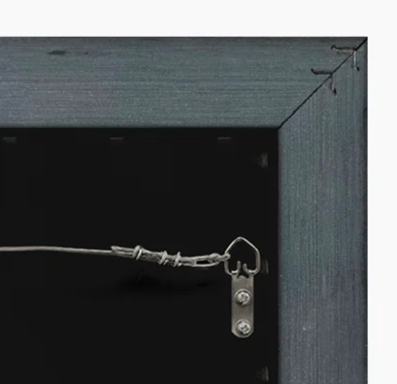 Stretched and beautifully framed in a floater frame of your choice, the back is finished with a matte black hardwood and hanging wire is mounted for easier hanging. No assembly required.